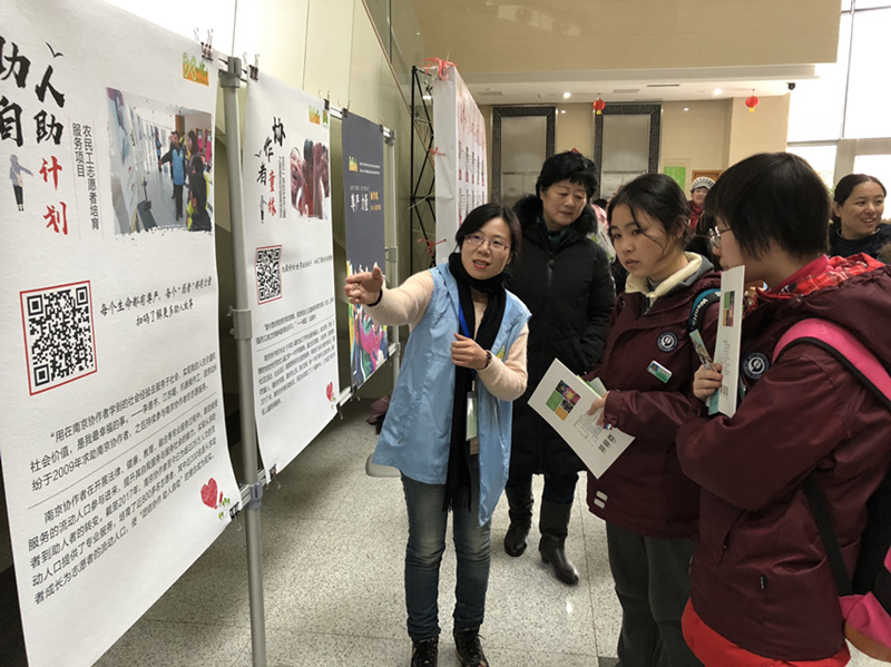 2018年1月6日,南京市第九中学高一(2)班的部分学生们参加了南京市协作者社区发展中心的年度总结大会。城市化的发展吸引了越来越多的流动人口来到城市,家庭式迁移已成为流动人口的主要迁移方式。但是人口的迁移对儿童造成了巨大影响。社区缺少支持流动儿童更好融入社区的环境与教育,也缺少专门服务于流动儿童参与社区的公共资源及社会组织,使流动儿童无法真正融入社区,又不得不生活在其中,严重缺乏归属感。基于以上需求,南京协作者从2007年成立以来,针对流动儿童社区参与、社区融入开展一系列社会工作专业服务。他们相信每个“弱者”都有力量,每个生命都有尊严,因此以“团结协作 助人自助”为核心理念,通过社会工作服务、研究倡导和专业支持,实现“让每个人都可以怀抱着尊严和梦想,自由地行走在大地”的愿景。