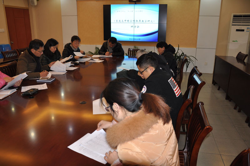 2018年1月12日中午,江苏省十三五规划课题《普通高中跨学科联席教学研究》课题研讨会在南京市第九中学会议室召开。课题主持人邵长峰副校长、张蓉老师,核心组成员张德举特级教师、杨培红、李虎山、封平强、金玉明、管恒铭、孙燕、都海英、马剑、易相鸥老师参加了本次研讨会。