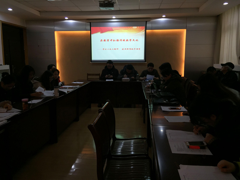 习近平总书记在党的十九大报告中指出,没有高度的文化自信,没有文化的繁荣兴盛,就没有中华民族伟大复兴。文化自信是一个民族强大的精神指引,文化兴则国运兴,文化强则民族强。在基础教育阶段,要着力加强人才培养中的中华优秀传统文化及社会主义核心价值观的融入教育。从娃娃抓起,深入挖掘中华优秀传统文化蕴含的思想观念、人文精神、道德规范,结合时代要求继承创新,让中华文化展现出永久魅力和时代风采。高二党支部开设党课《在教学中弘扬传统数学文化》,高三党支部开设党课《在教学中弘扬中国文化》,两次党课,让一线的党员教师学习并思考如何在各自的教学实践中弘扬我们中国优秀的传统文化。