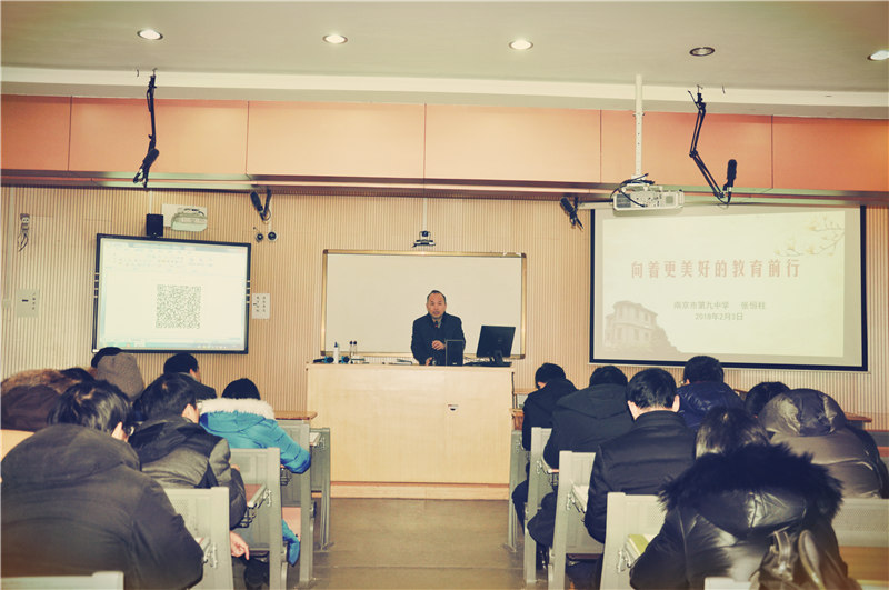 张恒柱校长代表学校做了题为“向着更美好的教育前行”的行政报告。张校长以回顾九中2017年度十五个新闻亮热点开始,新颖的方式,令全体会员耳目一新。详尽的内容,风趣的谈吐,给与会老师带来视听双重享受。