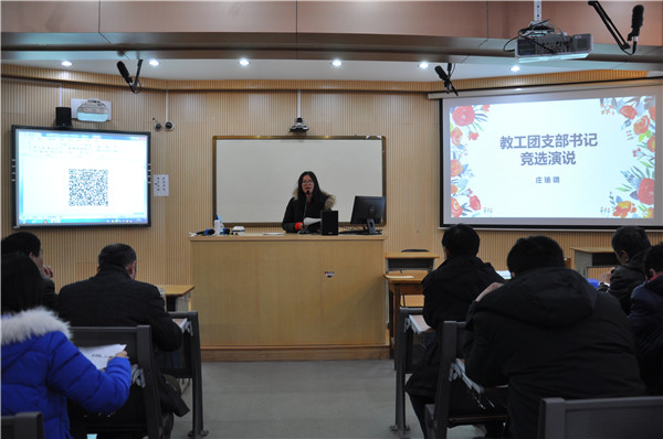 参加竞聘的青年教师分别是庄瑜璐老师、戎凯利老师、张小霞老师,张瑞寒老师和袁曦老师。他们从各自的工作经历、参加竞聘的理由、工作设想等方面进行竞聘演讲,都表示要以高度的责任心与使命感担起团支部委员的责任,认真做好团的工作,认清形势,把握大局,加强团员青年的思想教育工作,充分展示青年团员教师的上进心、面对挑战的自信与热情。