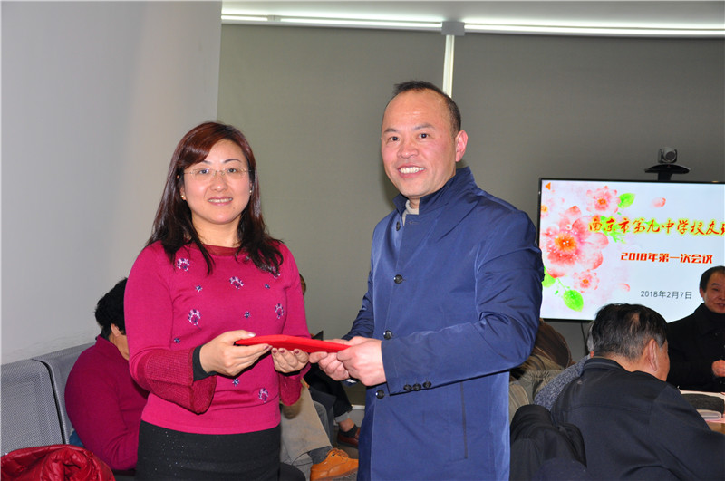 2018年2月7日,南京市第九中学召开校友理事会2018年第一次例会,向理事们汇报九中2017年取得的丰硕成果。同时,也为了更好地向理事们展示九中校友发展的良好态势,此次会议选择在德基广场会议室举行。南京九中校长张恒柱老师,九中校友会会长、南京德基董事长吴铁军等30多名校友出席本次会议。本次会议由九中校友会秘书长陈洪顺先生主持。 吴铁军致欢迎辞,对校友光临德基表示感谢,并期待学校的发展更美好。张恒柱校长对2017年的校友会工作进行了总结,并且跟校友会理事们汇报了2017年学校高考成绩取得的辉煌成就,介绍了学校特色建设再上新台阶:音乐课程基地、男子篮球硕果累累。张校长对校友们为学校作出的贡献表示了极大的肯定与感谢:张大春校友捐资设立奖学金;87届(2)班校友捐资修建校友长廊;王红阳院士、杨德广教授等大咖陆续回校开设大师成长课程。张校长希望校友多回学校看看,共同感受九中的快速发展。听到这些好消息,现场响起一阵阵热烈的掌声。 之后,张恒柱校长宣布九中校友理事会增补名单,增补南京九中副校长邵长峰、樊晓鸣,校长助理张翼飞、桑小兵,校友胡全康、龚庆亚、宋晓登等为校友理事会理事,增补弘光中学周易宏校长为副会长,增补九中校长助理王艳飞为副会长兼秘书长。校友理事会成员一致鼓掌通过,张校长为理事们一一颁发荣誉证书。 在现场,学校给校友分发九中校报《九中芳华》,校友们一边认真阅读一遍感慨于学校教育教学工作的成果。校友们畅谈对九中建设的期待与构想。会后,大家一起观看了南京九中2018新春音乐会,共同感受学校文艺中心依托江苏省音乐课程基地建设取得的重大突破。