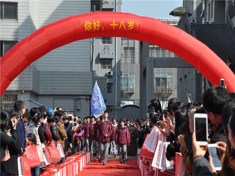 下午两点,同学们身着校服,手执班旗,庄严地走上红毯。经过“你好,十八岁”的成人拱门,怀着“博学雅行怀壮志以高歌,尚德静美携梦想而奋进”的美好期愿,在任课老师和家长的欢迎中活动正式开始。