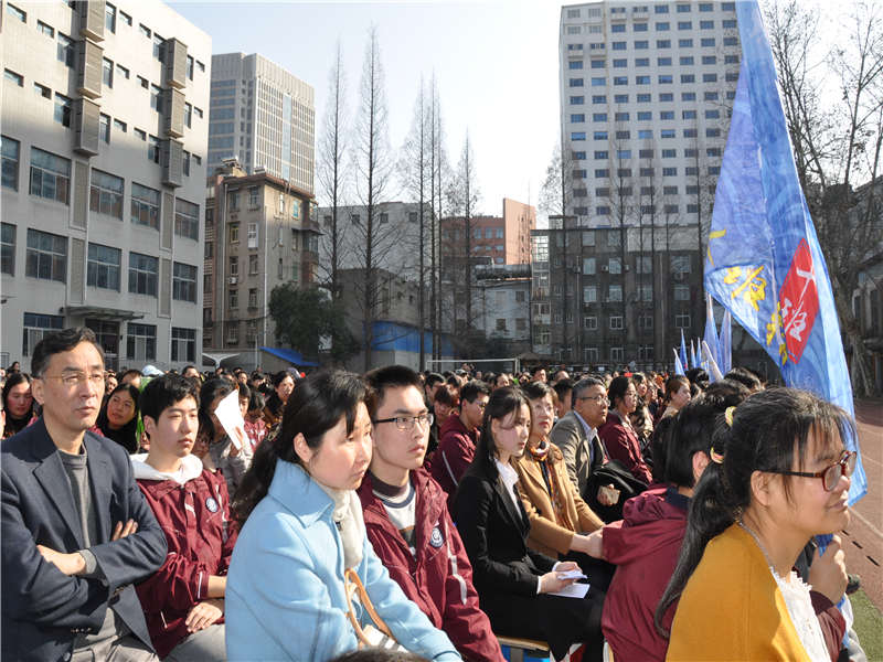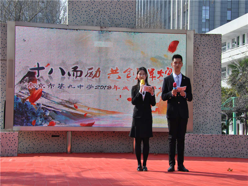 2018年3月10日,南京九中在学校操场上隆重举行了主题为“十八而励 共创辉煌”的高三成人仪式暨高考激励大会。年级部主任吴昊老师主持本次大会,校长张恒柱老师、副校长邵长峰老师、副校长樊晓鸣老师、校长助理张翼飞老师等学校领导、高三年级880余名同学和他们的父母、任课老师参加了这次大会。