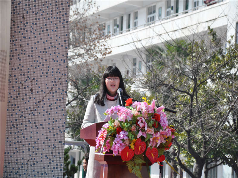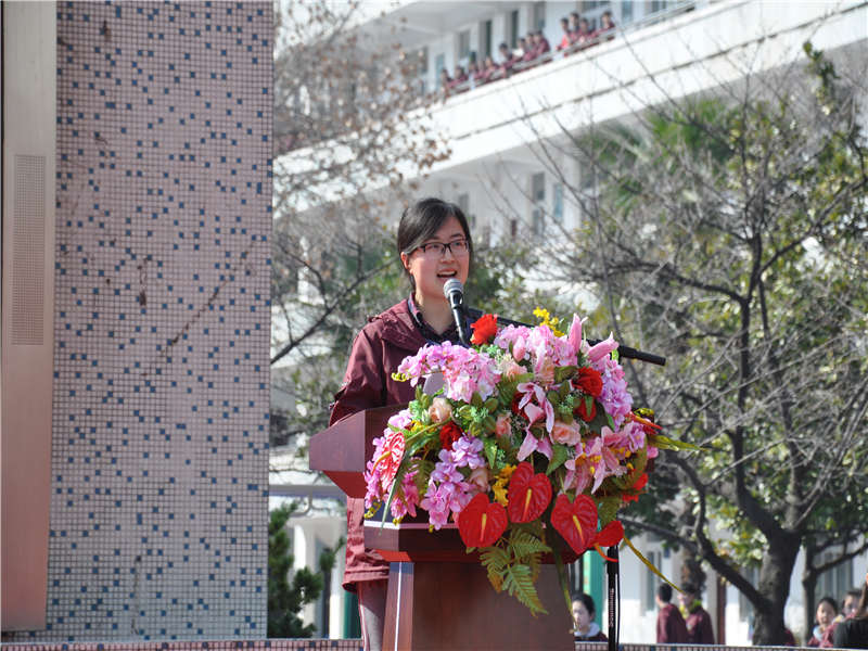 第三篇章的开场是由17届毕业生制作的微电影《穿越时空的相遇》,同学们去自己理想的大学合影,学姐学长的祝福和鼓励亦让同学们精神振奋。抒情之后便是庄严的宣誓时分,高三的顾琢成同学带领全体学子宣誓。在庄严的成人宣誓仪式后,张茹芳老师代表全体高三教师致辞,充满激情又饱含深情的话语打动了在场的每一个人。