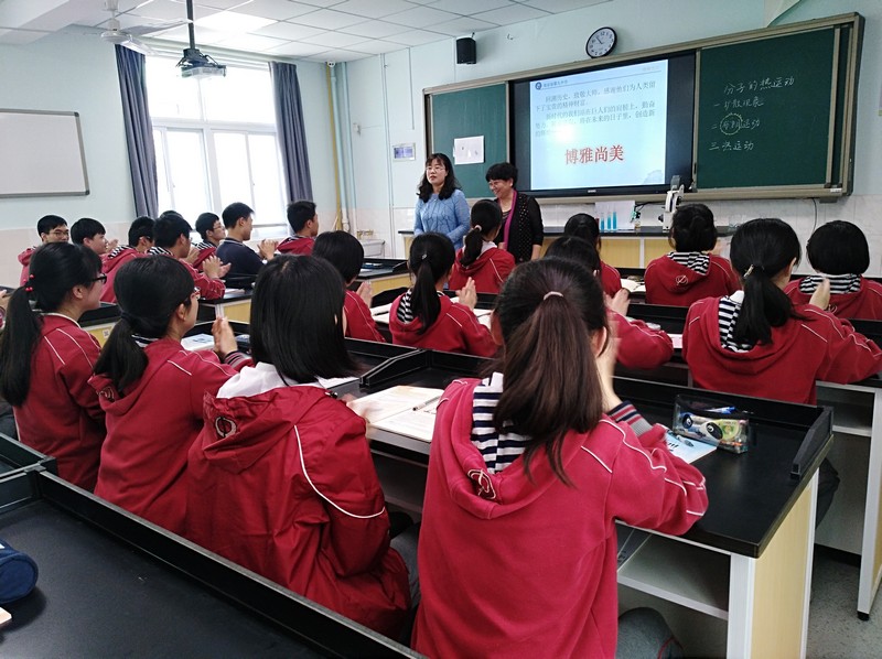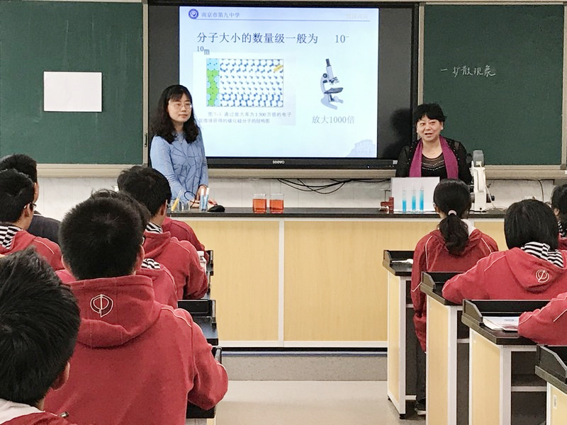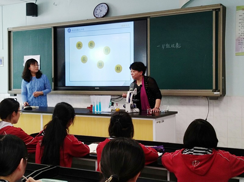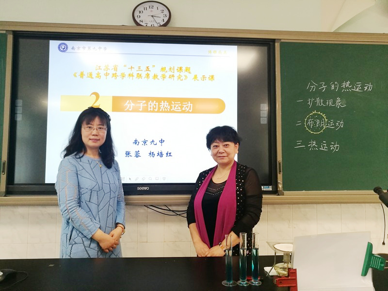 为推进江苏省“十三五规划”课题《普通高中跨学科联席教学研究》研究工作,创新高中课堂教学新模式,4月28日上午,我校物理张蓉老师、生物杨培红老师在物理实验室向全校展示了一节名为《分子热运动》的联席教学观摩课。