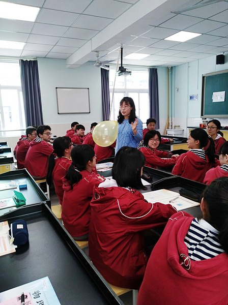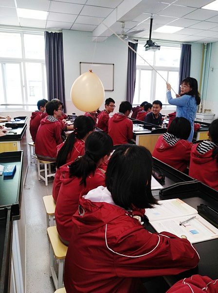 为了帮助学生加深对大颗粒运动不明显的理解,张蓉老师用大小对比强烈的两个气球来模拟固体颗粒,通过让学生对气球吹气的方式模拟周围水分子对颗粒的作用力,将复杂难懂的物理原理设计为有趣的活动,使学生通过情境模拟的形式加深对知识的理解。