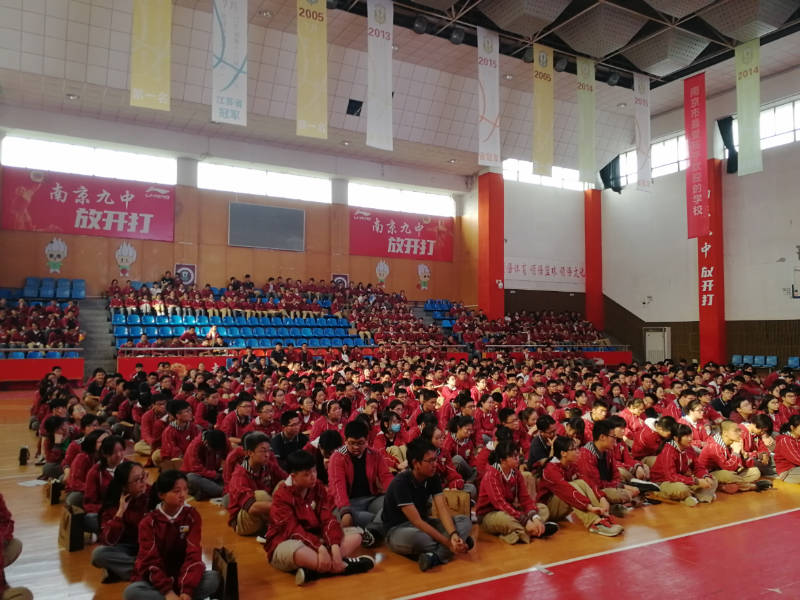 2018年5月9日下午,南京九中高二年级组在体育馆召开全体学生大会,对小高考及期中考试中表现优秀的同学进行表彰,同时对全体同学进行进入高三前的动员。