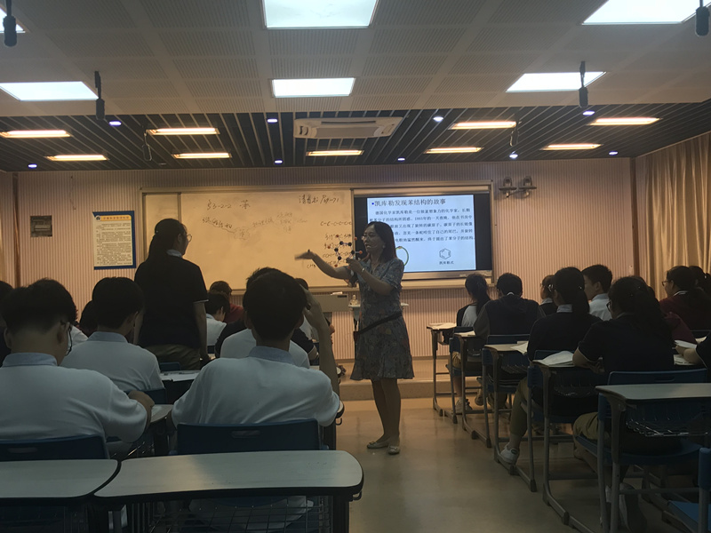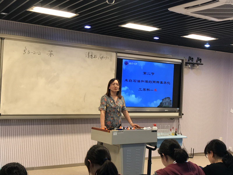 5月15日下午4时,九中化学组韩丽丽老师在南京市人民中学参加2018年玄武区化学优质课评比。这次赛课的课题是高中化学(人教版)必修二《来自煤和石油的两种基本化工原料——苯》。韩老师从苯泄露新闻事件引入,使学生们对苯的物理性质有直观印象。再带领学生沿着苯结构的科学发现史,一步步还原历史的轨迹,逐渐接近苯的真实结构。接着,通过实验,检验学生们的猜想,使学生们获得苯化学性质的内容知识。最后,韩老师通过思维导图式的板书,给学生们展示了利用好思维导图可以有助于学习、整理和记忆。