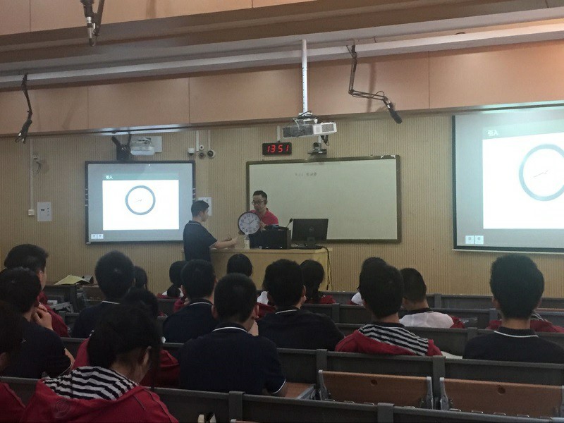活动的第一阶段徐文晖老师展示了一节《电动势》公开课,将电动势这一抽象的概念和抽水机进行类比,最后让学生总结归纳得出电动势的定义,让学生在理解的基础上建构了新的概念。课后教研员杨震云老师对本节课给予了高度的评价,也提出了在部分环节可以融入一些科学方法的教学。