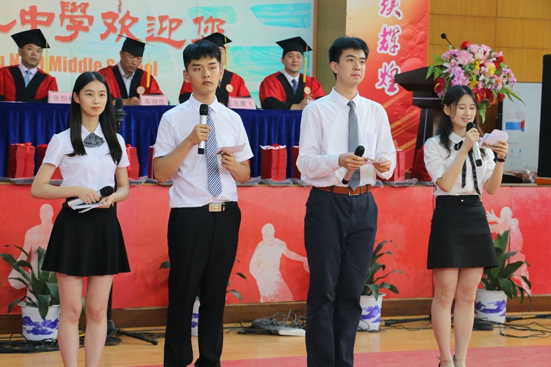 一段校园短片的播放拉开了毕业典礼的帷幕,三年的点滴回忆再次涌上心头,十八个班的班长们用自己的祝福,开启了大家再一次的感受到了蒸蒸日上、蓬勃发展的九中校园风采。张校长、吴主任先后致辞。他们在致辞中与同学们一起回顾了三年的成长历程,表达了母校对学生的关怀和鼓励,并对同学们提出了殷切期望。