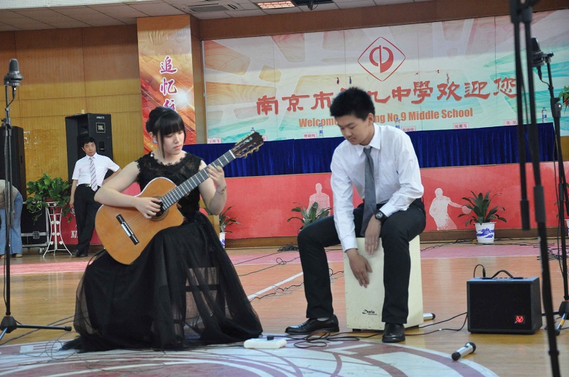而来自高三11班的学霸才女刘木子含用古典吉他独奏《always with me》和黄昏,让我们从激动和兴奋中暂时回归平静,在静静的看一看身边的同学,想一想自己的初心。