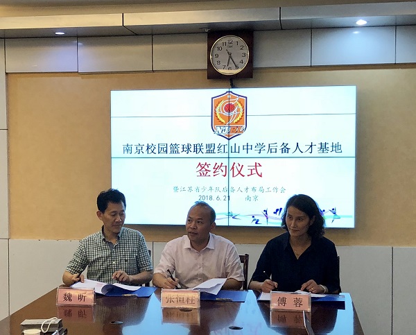 6月21日下午,在九中尚美楼一会议室举行了南京市校园篮球联盟后备人才布局会议,校园篮球联盟主席学校九中与红山中学、八瓣兰花俱乐部签署了后备人才基地战略合作协议。