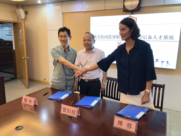 在校园篮球联盟主席学校九中张恒柱校长与红山中学魏昕校长、八瓣兰花俱乐部傅蓉总经理签署的后备人才基地战略合作协议中,除了约定为基地学校提供定制化服务,定向输送培养,打造以南京九中为核心的篮球共同体,创新后备人才的培养模式。也希望利用品牌效应,以基地为中心扩大周边辐射,让更多的热爱篮球运动的孩子们参与到专业的篮球训练中来。