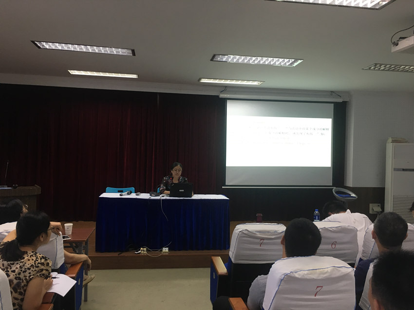 涂海燕老师就阅读理解做出了具体分析。涂老师以期初调研考试中的阅读为例,从语篇语言学的角度,基于衔接、连贯、目的性、可接受性、信息性、情境性和篇际性等七个角度,做了英语阅读教学模式的介绍和探究。