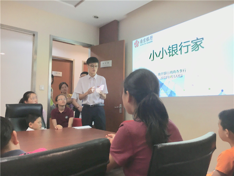 7月22日早晨9时许,在南京银行鸡鸣寺支行的小会议室里,来自南京九中高二1班的几名小小志愿者们参加了一场特别的“课程”。活动由该银行大堂经理组织开展。近年来,假币事件层出不穷,闹得人心惶惶,此次活动旨在提高广大学生对防伪钞票的认知和安全意识并借此机会体验一下银行的大堂中工作人员的工作。