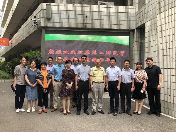 下午,在江苏第二师范学院徐国华副校长的带领下,生命科学与化学化工学院院长蒋功成、教务处陈蓓副处长、生命科学与化学化工学院花书贵副院长、生物教育研究所高学林所长、教务处实践科邓海威科长、生命科学与化学化工学院丁正峰老师一行,来到九中进行交流,并参加了实习基地挂牌和签约仪式