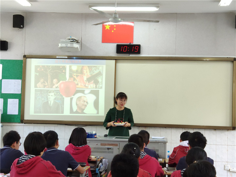 张蓉老师首先以“三个苹果”的故事引入课题:一个苹果开启了亚当夏娃的智慧;一个苹果砸中牛顿的脑袋,开启了科学的大门;一个苹果被乔布斯握在手中,成为人类创新的代名词。而今天的课,我们就来研究第四个苹果:苹果电池。
