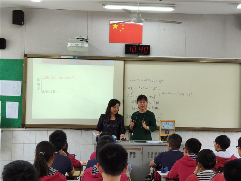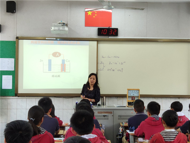 这节课上,物理和化学两位老师合作,从物理和化学两个视角对电池的原理做了解释。学生在听课以后纷纷表示,原来以为只是一节平常的物理课,没想到化学老师也来为我们讲课,现在才对电池有了深刻的认识,原来学科之间是没有界限的啊。
