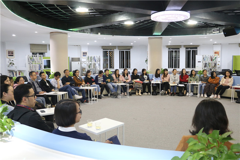 2018年10月12日晚,由教科室、教工团支部与博雅青年教师读书会共同举办的第五期“碑亭夜话”在南京九中尚美厅拉开帷幕,各位老师齐聚一堂,共同交汇思想。