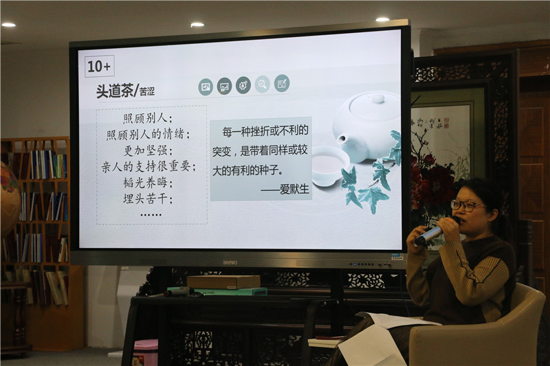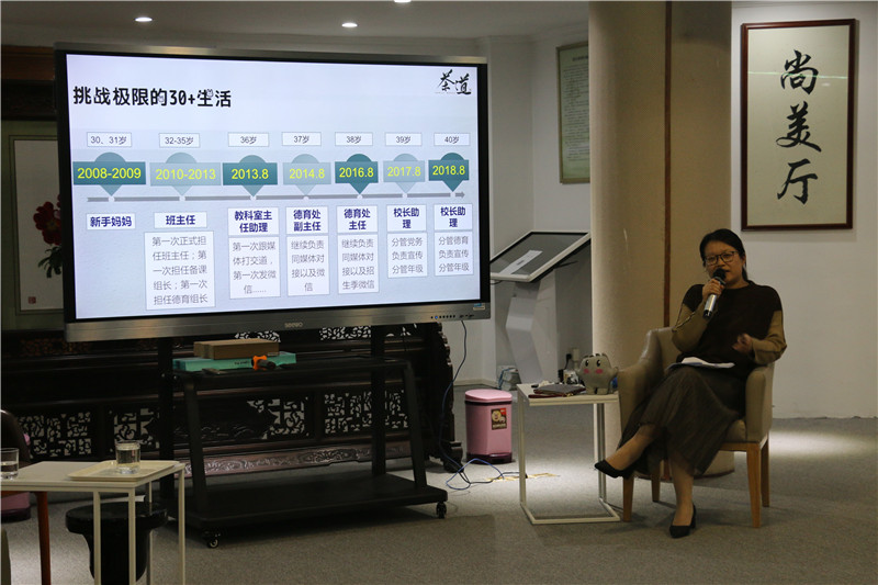 三道茶——醇厚。30多岁,从一位新手妈妈到班主任到德育处主任再到如今的校长助理,一步一个脚印,由不安到淡然,由被动到主动。她建议青年教师平时热爱自己的事业,保持良好的心态,努力争取家人的支持。