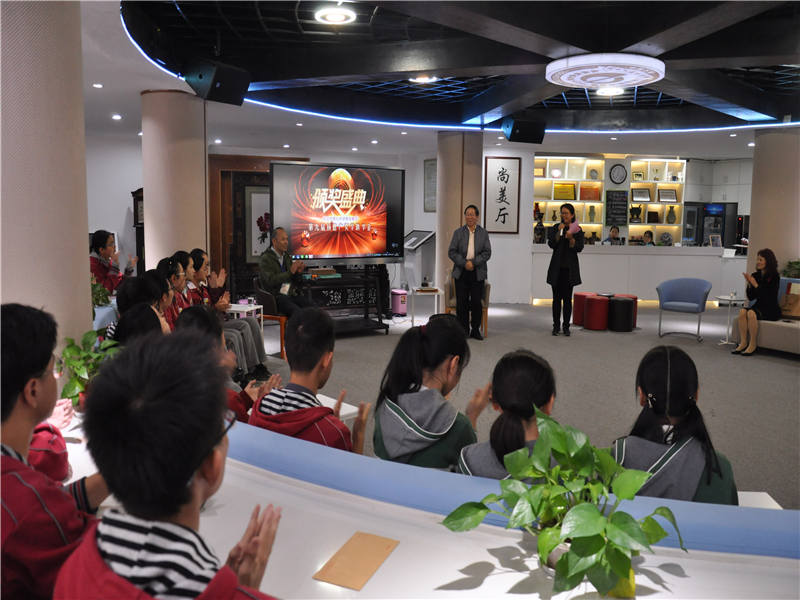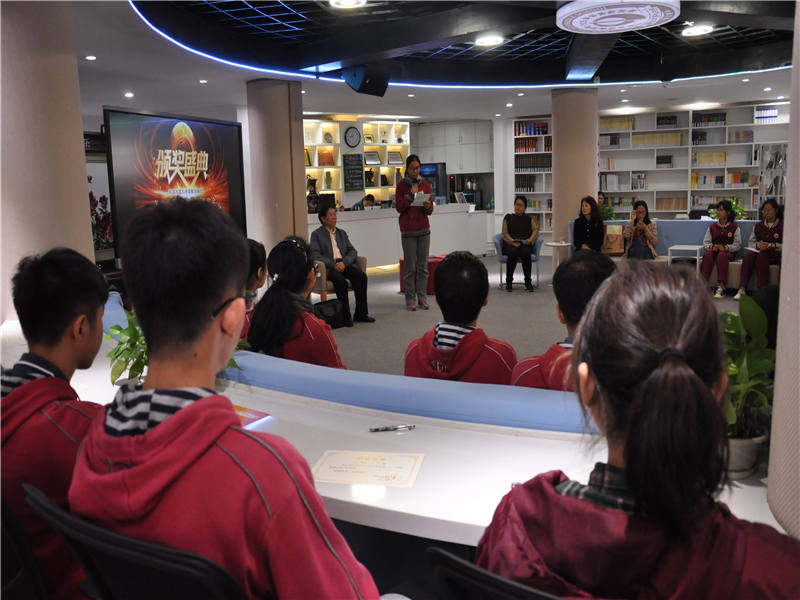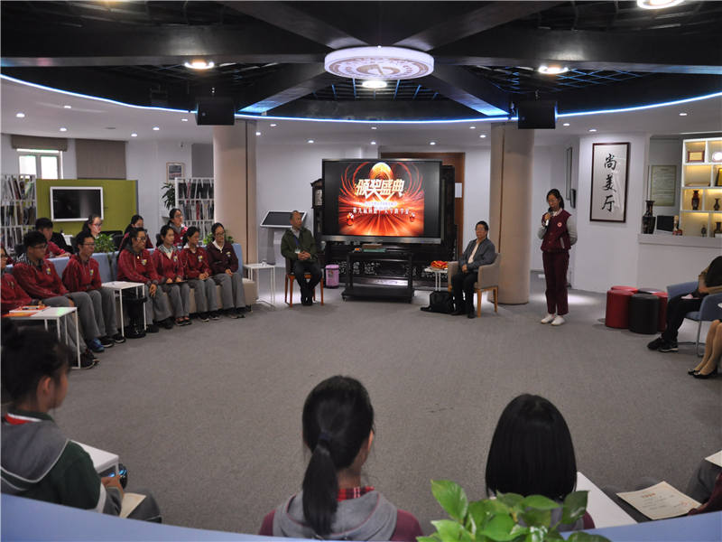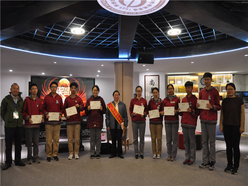 南京市第九中学校长助理王艳飞老师宣读了表彰决定,杨德广教授和南京市第九中学校长张恒柱老师共同为孩子们颁发荣誉证书,孩子们也双手递上了写给杨教授的信。