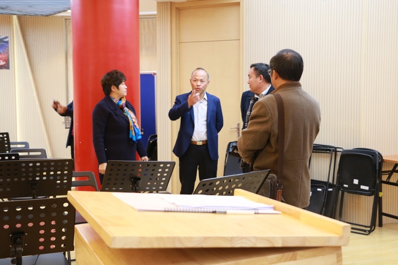 日,济南教育代表团到九中考察音乐课程基地建设,九中张恒柱校长和文艺中心的张薇老师热情地接待了代表团。