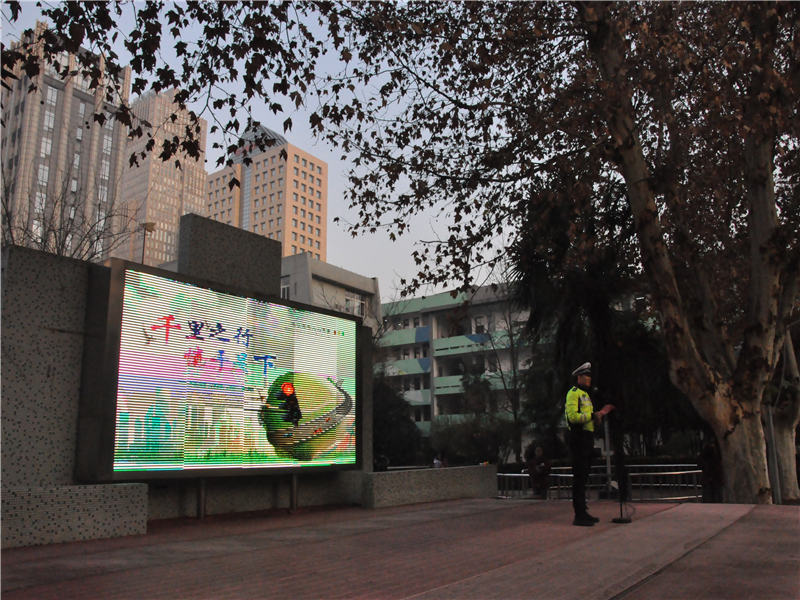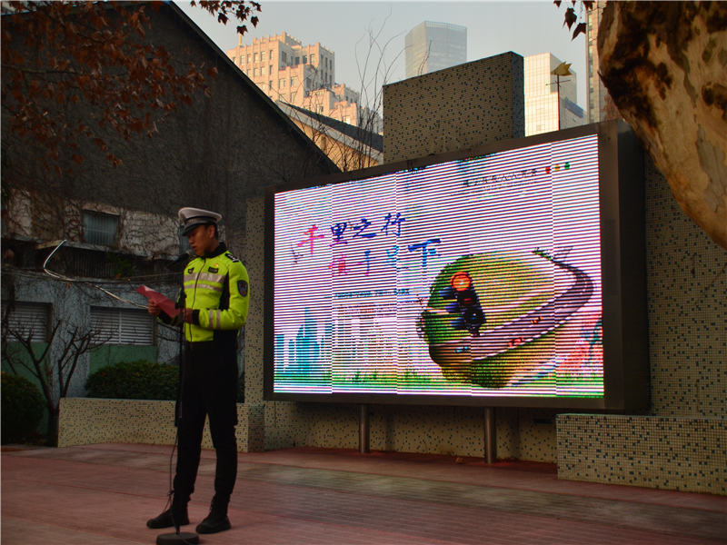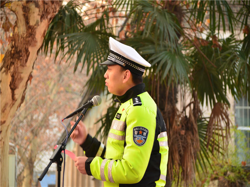 2018年12月17日,南京市第九中学举行“千里之行 慎于足下”主题晨会。学校邀请交警一大队三中队刘昌茂副中队长就交通安全问题进行国旗下讲话。