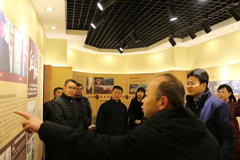 在九中校史馆,张恒柱校长向李世峰书记介绍了九中的办学历史。九中的最早的前身是民国时期著名民主人士马相伯先生创办的上海震旦大学南京预科学校,九十四年来,五易校名,数易其址,历经波折,但办学质量始终在南京市名列前茅,去年又因一本达线人数470人、370分以上学生30多人、素质教育成效显著和南师附中一起成为主城区囊括南京市普通高中发展性评估全部五项大奖的两所学校之一。张校长向李世峰书记等区领导如数家珍介绍九中的发展成就,李书记对九中城市高中的的先进办学思路、深厚的文化底蕴和教育教学中取得的累累硕果进行了充分的肯定,勉励九中继续加强师资队伍建设,对标找差,追求更高质量发展,以满足人民群众不断增加的对优质教育的需求。