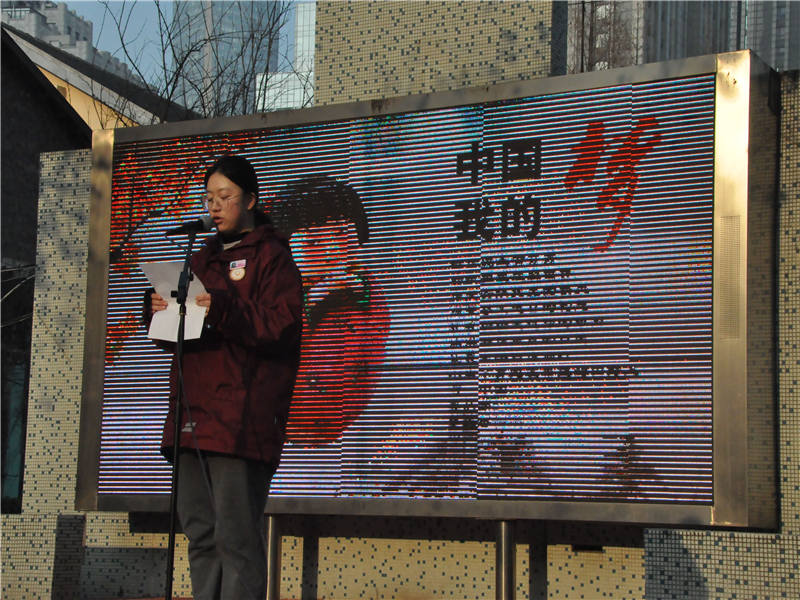 2019年2月25日,南京市第九中学举行“少年中国梦”主题晨会。少年强则国强,中国梦亦是每个人的梦,高一(6)班曹馨元同学作国旗下讲话,分享了她眼中的中国梦、少年梦。