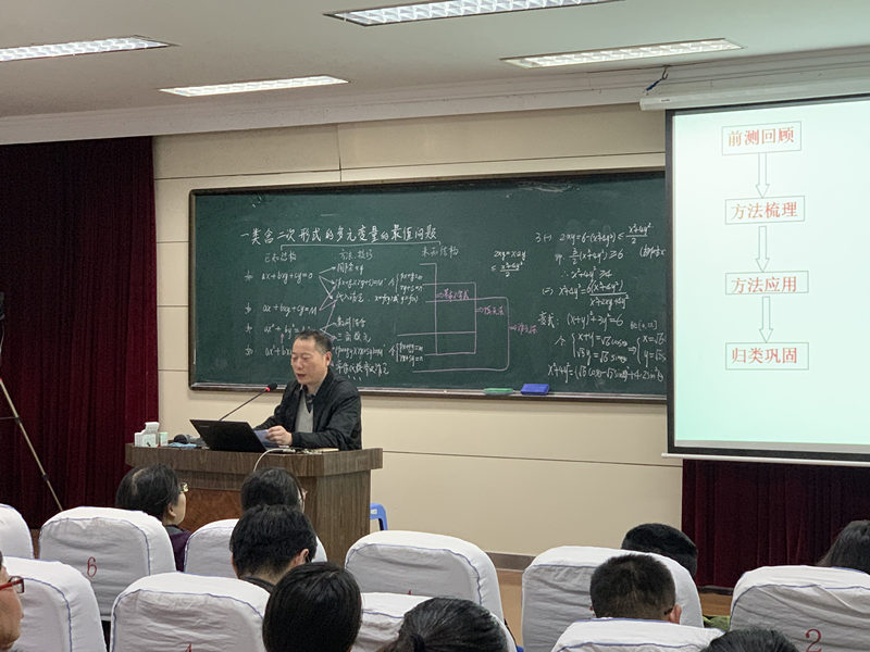 临近高考,“如何才能精准进行冲刺复习,大幅提高课堂教学复习效率?”这个问题一直困扰着每一个高三数学老师。南京九中韩雪老师就此开设了一堂“高考数学微专题复习”观摩课,就南京九中数学组对上述问题的研究成果进行了精彩的过程呈现,起到了很好的教学示范作用。市数学学科教学带头人、南京九中数学教研组组长张荣彬老师对韩雪老师的课进行了精彩点评,并结合韩雪老师的课堂教学,介绍了南京九中数学组的研究成果和做法,对高三数学复习课的教学起到了很好的指导作用。市教研室龙颜文老师给予了高度的评价。南京市第十三中学赵京旦老师就南京市第二次模拟考试进行了相关分析,并提出了后期复习的教学建议。南京市中华中学姚发权老师做了“关于中档题编写与训练的思考和使用建议”的专题讲座。