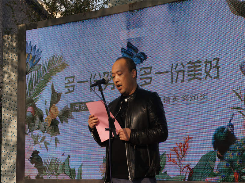 玄武区震旦发展教育基金会秘书长徐斌先生宣读南京市第九中学2018-2019学年第一学期“邓颖超学习精英奖”表彰决定。