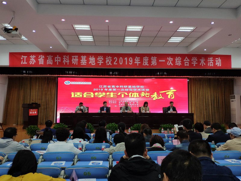 2019年4月19日,江苏省高中科研基地学校2019年度第一次综合学术活动在句容市实验高级中学举行,活动主题为“适合学生个体的教育”。江苏省教科院副院长王国强、江苏省教科院基教所倪娟所长出席了开幕式,各科研基地学校领导、老师及观摩教师400余人参加了活动。