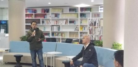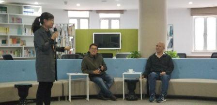 听取了公开课以后,老师们在博雅厅进行了更为深入的交流。李俊成老师向来自陕西的客人介绍了九中的概况、物理组团队的建设情况以及教学成绩。