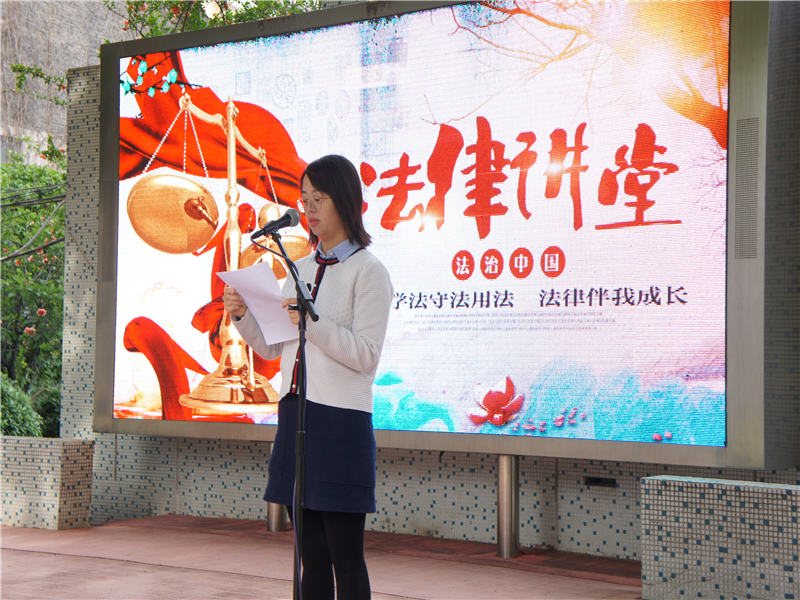 2019年5月6日,南京市第九中学举行“尊法学法守法用法 法律伴我成长”主题晨会,南京市第九中学政治教研组左蓉老师做国旗下讲话。