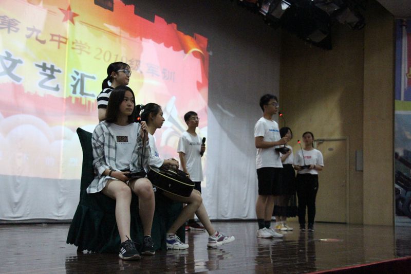 8月8日晚,同学们欢聚在大礼堂,欣赏精彩的文艺演出。合唱、芭蕾、热舞、民乐合奏、吉他弹唱、中英双语朗诵……虽然排练仓促,但多才多艺的同学们仍然展现出九中学子能歌善舞、才华横溢的一面,赢得了场上阵阵掌声与喝彩声。而高一的十四位班主任与年级主任封平强老师的一曲合唱《成都》,更是把气氛推向最高潮。