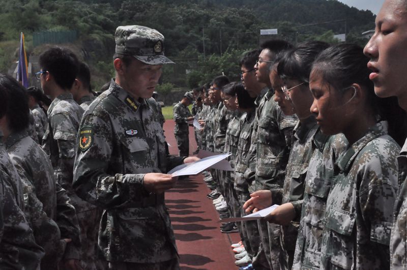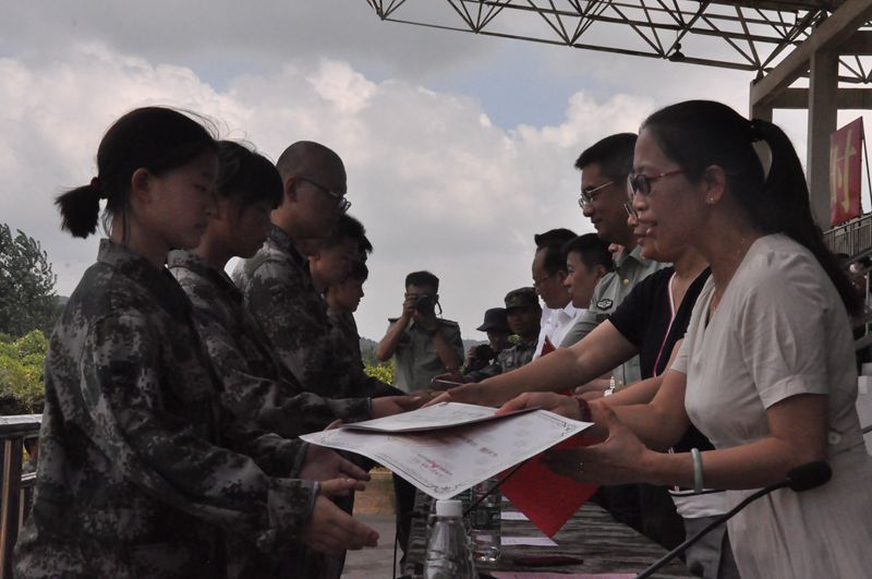 王艳飞副校长宣读了本次军训“优秀标兵”、“优秀班集体”荣誉称号的获奖名单,班主任与教官一同为所有学生颁发军训合格证书,祝贺同学们顺利结束军训。来自高一(1)班的优秀标兵张雨晴同学代表全体同学,向辛勤陪伴同学们四天训练的教官、老师们致以最诚挚的谢意,并感慨道,军训让同学们学会了守时,学会了独立,学会了坚强,令同学们受益匪浅。最后,张恒柱校长发言,他对同学们的军训成果给予高度肯定与赞扬,向组织并参与此次军训的教官与老师们表示感谢,并希望同学们在今后的高中生活中,继续发扬军训中所养成的种种优良作风,在未来的三年里,迎难而上,勇闯难关,逢山开路,遇水搭桥,克服一切艰难险阻,为自己,也为九中带来更大的荣光。