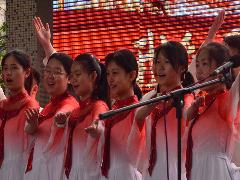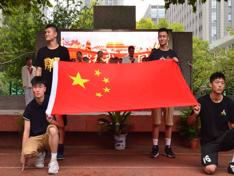 最后,文艺中心为大家带来歌曲《我和我的祖国》,全体师生情之所至齐声歌唱。此刻,师生们手中挥舞着国旗,那耀眼的红涌动着的是九中人的爱国情,是一国人的中国梦。