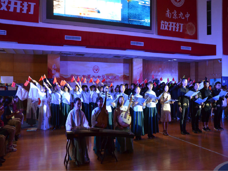 2019年9月12日18时18分,南京市第九中学在体育馆隆重举行以“诗言志,梦为马”为主题的金秋诗会。本次诗会旨在以诗载志,逐梦年少之时;以诵传情,共筑爱国理想。值此中秋来临之际,高一年级14个班济济一堂,共贺佳节。