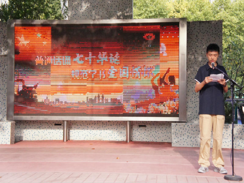 2019年9月16日,南京市第九中学举行“普通话诵七十华诞,规范字书爱国情怀”主题晨会。