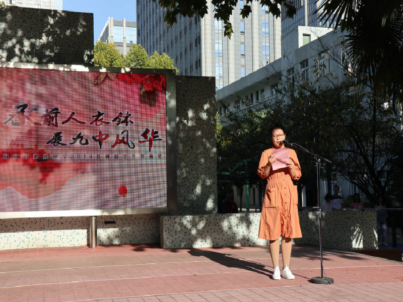 2019年9月23日,南京市第九中学举行“承前人衣钵,展九中风华”主题晨会,本次晨会的主要内容是表彰获得“邓颖超学习奖”、“邓颖超学习精英奖”、“邓颖超特长奖”和“邓颖超风尚奖”的优秀学生。