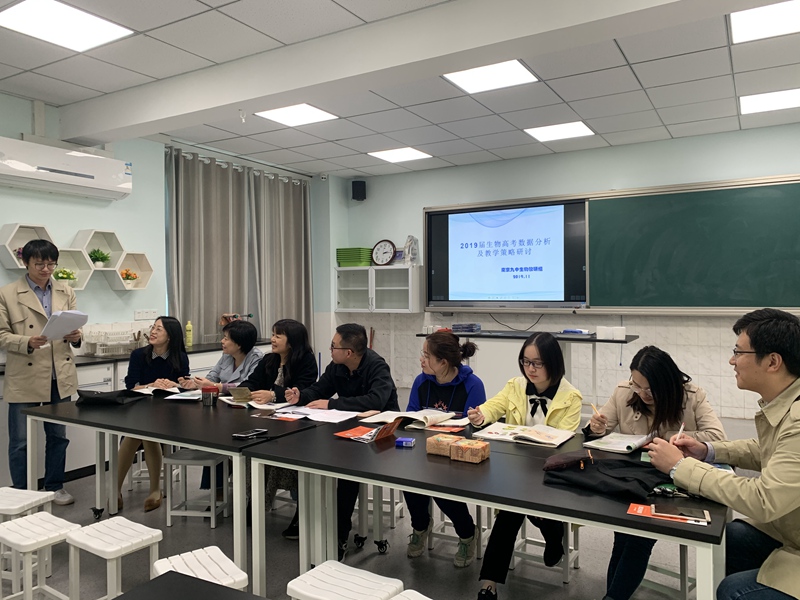 2019年11月5日下午,南京九中生物教研组全体教师参与了校内生物教研活动。本次活动的主题是对本校2019高考生物考试情况进行分析以更好的应对2020年高考。