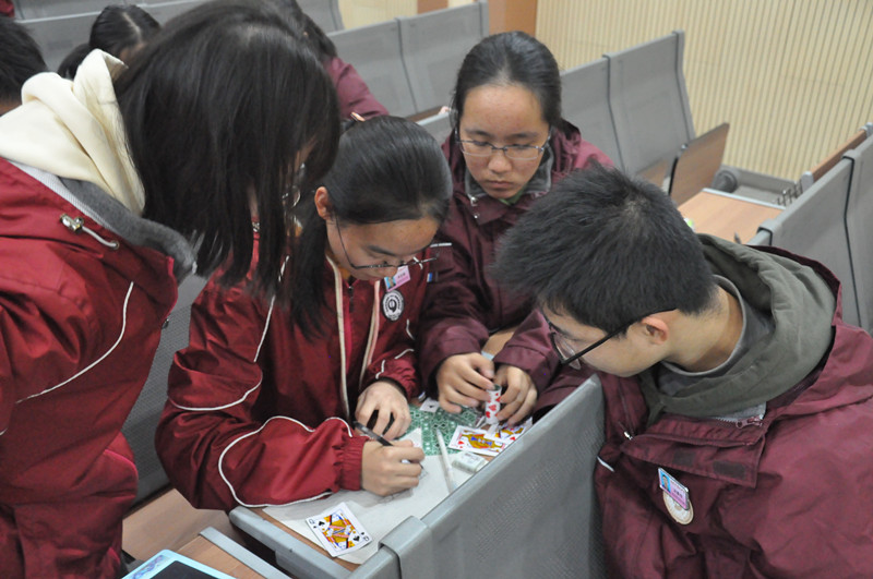 2019年11月21日中午,德育处、通用技术组的老师组织高一年级学生在弘光楼106教室举行了“纸牌搭桥”的承重比赛。这是本次科技文化艺术节的一项活动,旨在培养同学们的创新思维和动手能力。