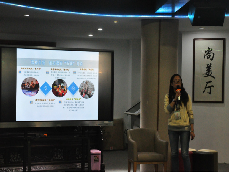 九中德育处主任陈珍年老师随后从德育工作方面为苏州黄埭中学代表团展示了九中风采。主要从学生管理、学校活动以及班主任队伍建设三个方面分享经验。