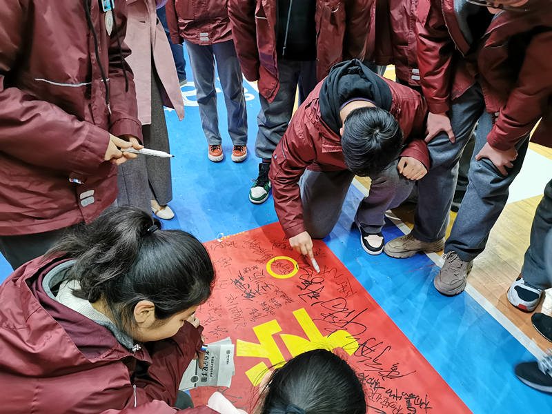 随后,李代国老师对同学们提出了常规和学习上的要求,在他的幽默的语言中,同学们的学习压力得到缓解。最后,高二年级的同学们纷纷在激励学业水平测试的横幅上郑重签名,同学们振奋与信心倍增。