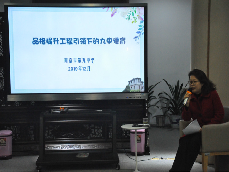 南京市第九中学德育校长王艳飞老师首先分享了九中的德育管理有关经验,以“品格提升工程”为主题详细介绍了九中德育活动的开展。