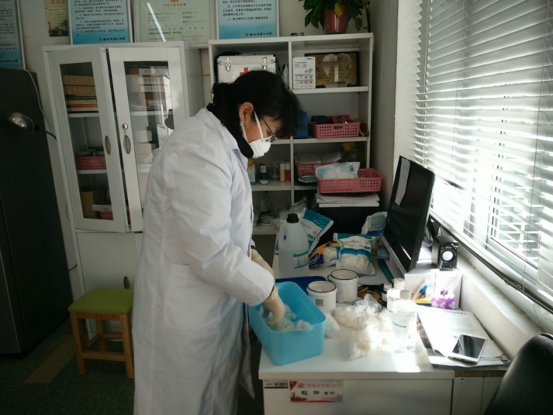 大年初一开始,因为疫情,他们又来到了这一特殊战场,制定年后防控方案。为了将疫情阻挡在校门外,他们制定了最严格的封门措施,坚决禁止校外人员进入校园。年后,开始为疫情准备开学用防护用品。大年初四,总务处的吴巧云老师为了准备开学前的体温计冒着严寒跑了八家药店。虽然学生不在校园,保洁人员每天正常打扫,保证了每天校园整洁清爽,厕所每天消毒。从初四开始,安全处在校门口对每一名进校人员均进行体温筛查。