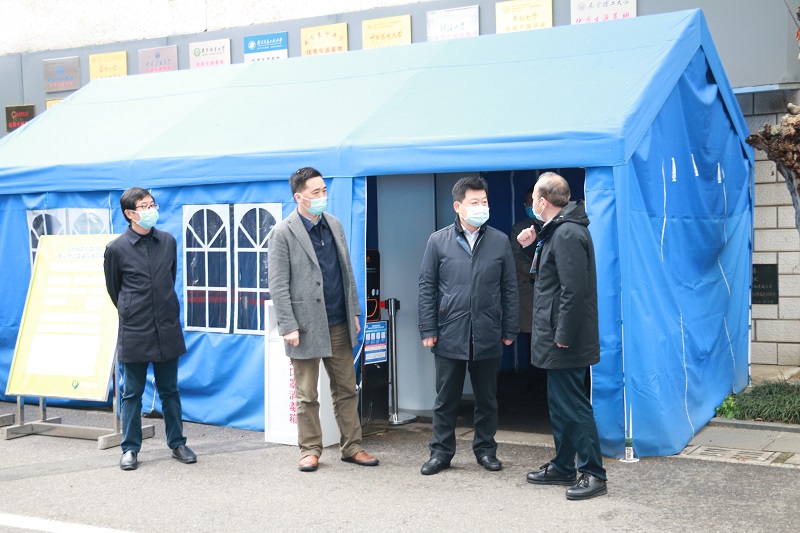 返校复课的第一天,孙局长一行最关心的还是九中师生的安全保障。他们查看了校门口的疫情防控操作流程宣传牌,询问了校门口红外线测温仪等防控设施的使用情况。孙局长还向九中张恒柱校长详细了解学校开学复课的各项应对措施以及开学第一天高三师生到校情况。孙局长表示,疫情期间,学校领导和老师都付出许多努力,市教育局将全力保障学校开学工作的顺利进行。
