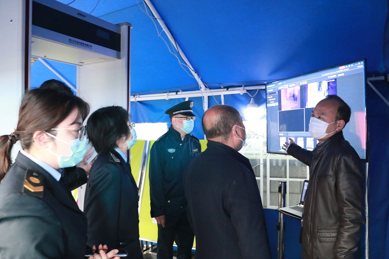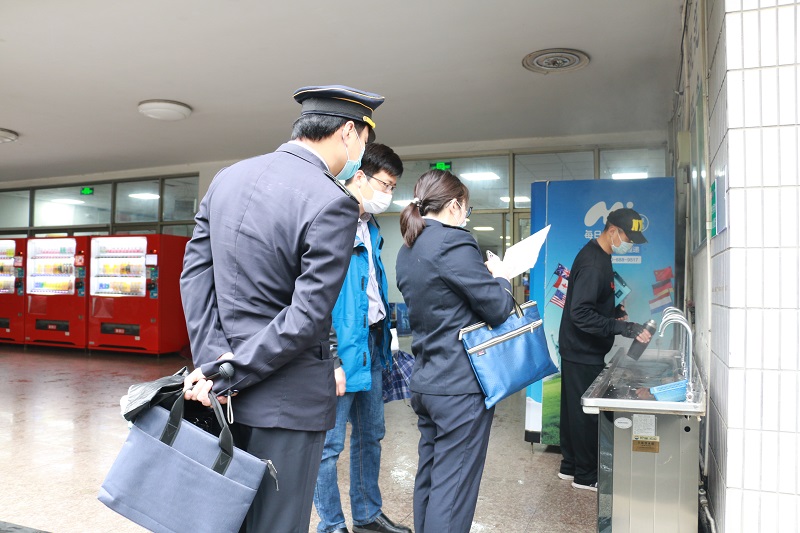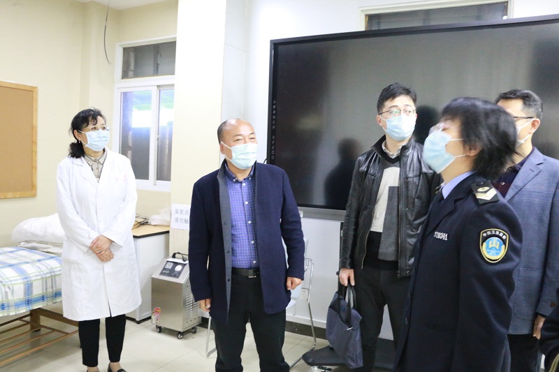 郑处长一行体验了校门口红外体温检测门,视察了学校隔离室、物资储备室、校医室、食堂及饮用水设备,查看了学校的两案九制的制定和执行情况记录。对学校的防疫措施和物资准备情况给予了充分的肯定,认为九中想在前、做的细,设备先进、措施到位、工作细致,为全市复课学校树立了标杆。