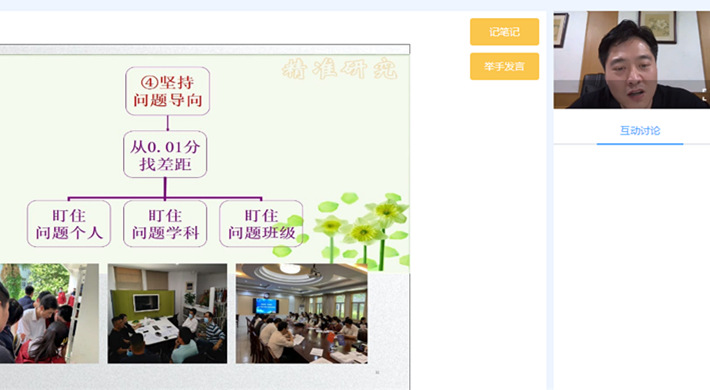 期中考试后,5月23日晚上7点整,九中高二年级举行线上家长会。本次线上家长会分为两个环节。第一个环节是吴昊副校长召开全年级线上家长会。他首先就复课一个多月后,同学们在校情况向家长们汇报,随后分析了本次期中考试的情况。在老师们一个多月齐心协作之下,同学们整体成绩有所提高。最后昊校就家长们关心的一些问题整体答疑。